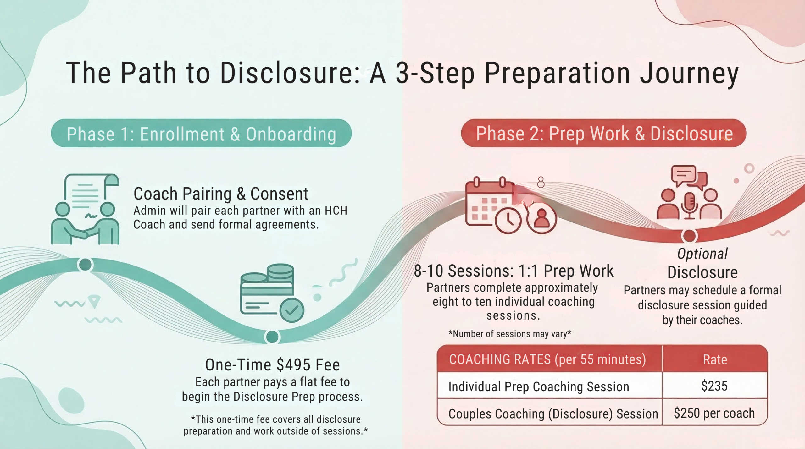 - If requested, Formal Therapeutic Disclosure can be completed virtually with a Couples Coach at HCH
